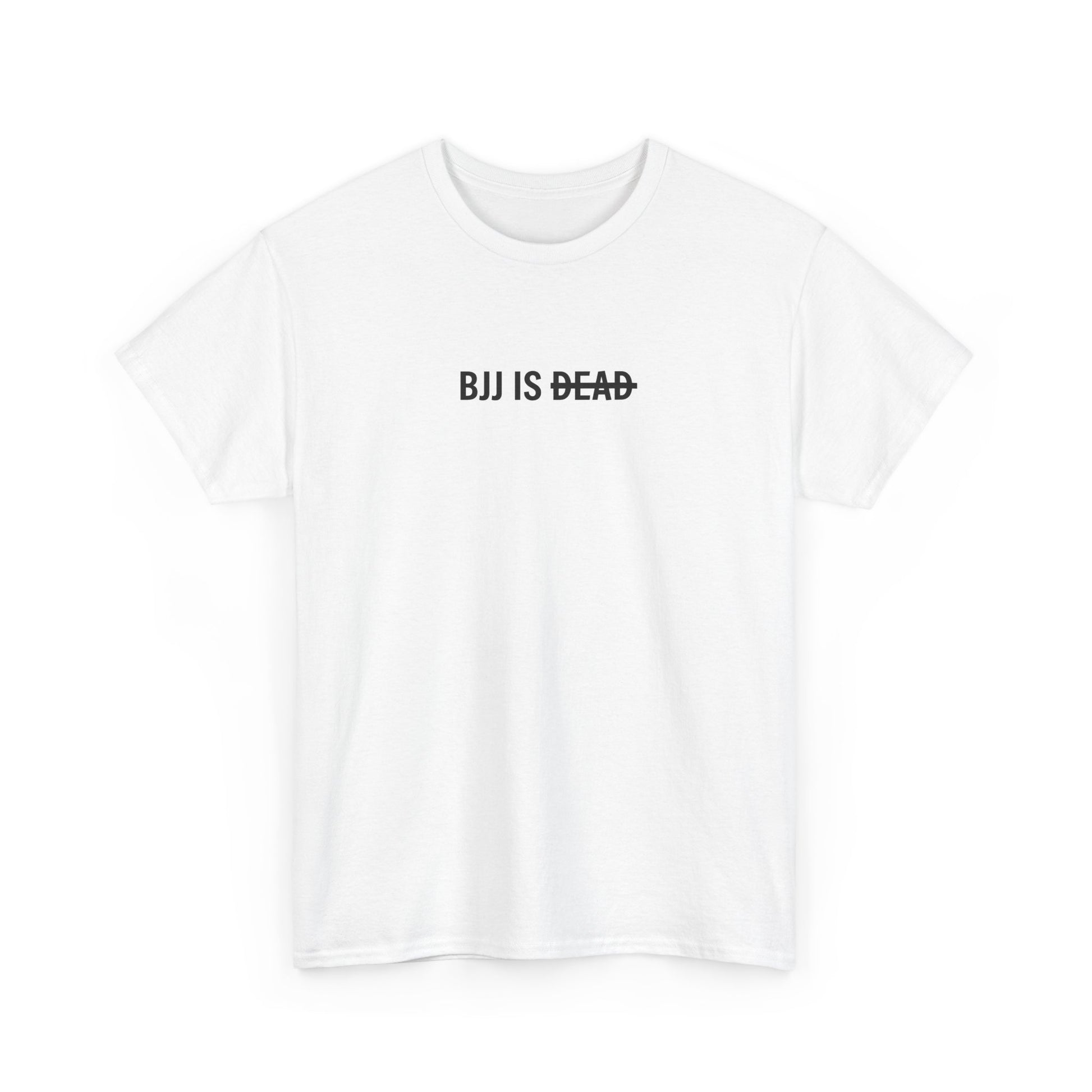 Controversial. Iconic. The BJJ is Dead tee challenges the norm with bold centered text on durable heavy cotton. Made for those who move differently.